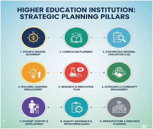 - Vision & Mission Alignment: Academic planning begins by aligning all activities with: Vision of the Institution, Mission Statements, and Core Values